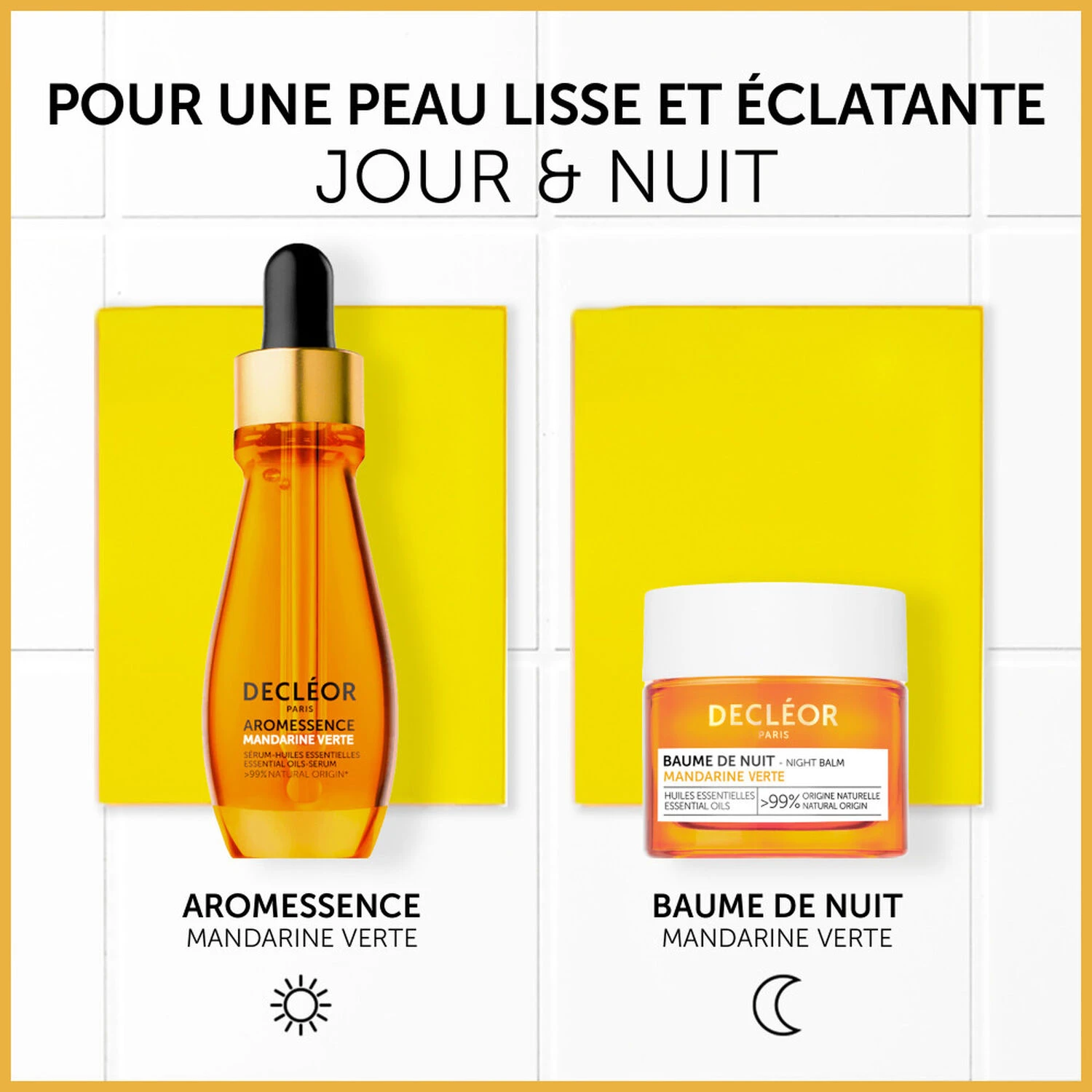 – D’huile essentielle de Mandarine Verte connue pour ses propriétés antioxydantes et lissantes