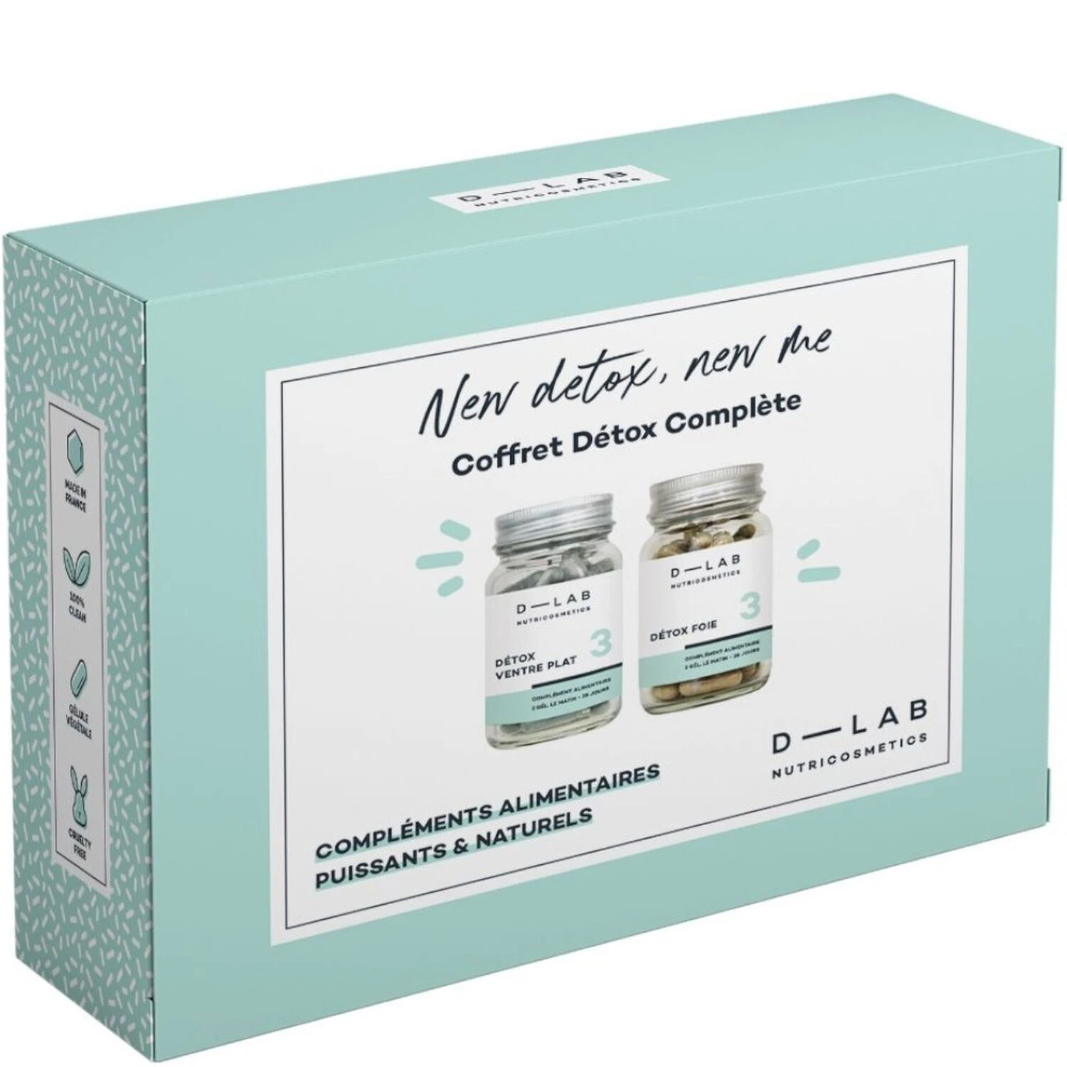 Détox Ventre Plat : INGRÉDIENTS (2 gél.) • Argile beige montmorillonite 150 mg • Gélule végétale : Hydroxypropylméthylcellulose • Extrait de fenouil 100 mg (EPS1 400 mg) ; fruit • Charbon actif végétal 100 mg • Mix de 5 ferments lactiques 60 mg (1 milliard UFC) : Lactobacillus acidophilus BIO6307 (200 millions UFC), Lactobacillus rhamnosus BIO6870 (200 millions UFC), Lactobacillus casei BIO5773 (200 millions UFC), Bifidobacterium bifidum BIO5480 (200 millions UFC), Bifidobacterium animalis lactis BIO5764 (200 millions UFC) • Extrait de boldo 50 mg (EPS1 200 mg) ; feuille • Fucus2 60 mg ; thalle • Lithothamne2 60 mg ; thalle • Sels thermaux de Vichy 40 mg • Extrait de riz. Détox Foie : Ingrédients : Chardon marie** (graine) – Silybum marianum (1,75 g) dont silymarine (56 mg) • Curcuma** (rhizome) – Curcuma longa (800 mg) • Artichaut** (feuille) – Cynara scolymus (320 mg) • Pissenlit** (feuille) – Taraxacum officinale Wiggers (160 mg) • Gélule végétale : Hydroxypropylméthylcellulose • Desmodium (feuille) – Desmodium adscendens (120 mg) • Radis noir** (racine) – Raphanus sativus (80 mg) • L-leucine (60 mg) • L-méthionine (50 mg) • L-isoleucine (30 mg) • L-valine (30 mg) • Sels thermaux (20 mg) • Antiagglomérant : Stéarate de magnésium • Sélénium (55 µg) 100% VNR. *Le format pro aussi appelé DAC est la formule Détox Foie distribuée chez les professionnels de la beauté. **Équivalent Plantes Sèches