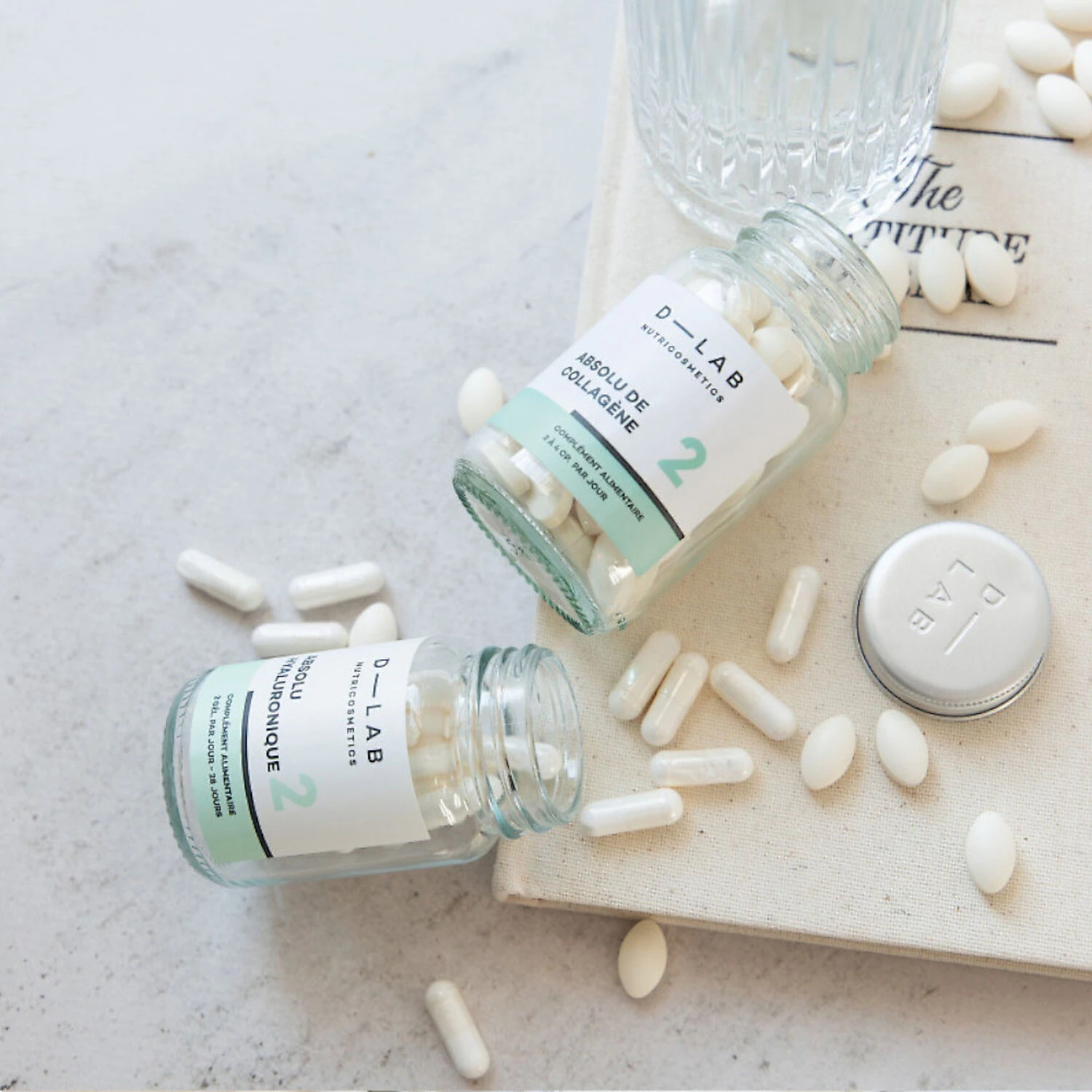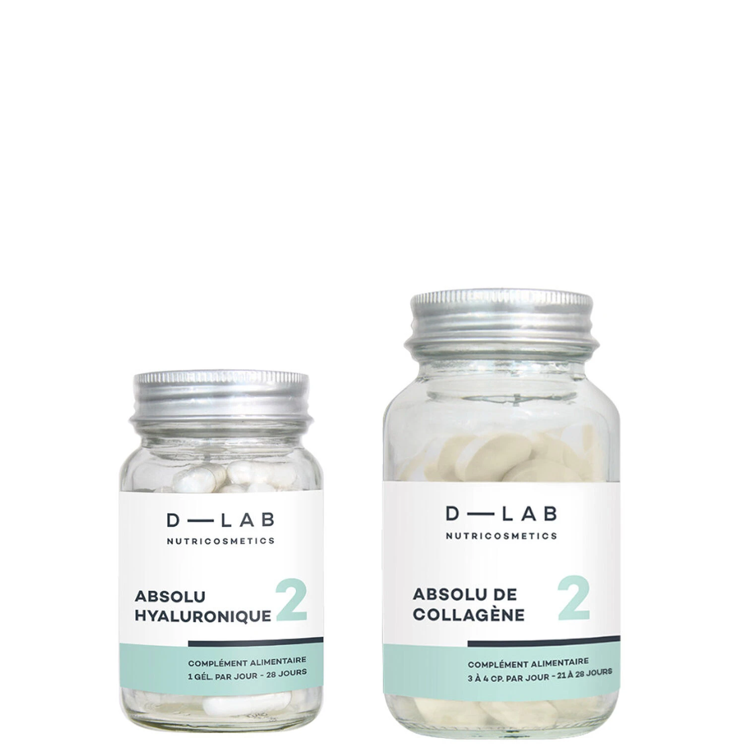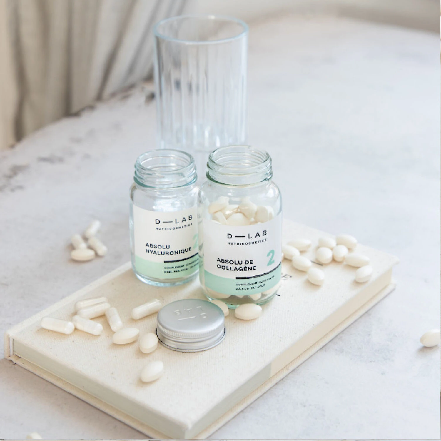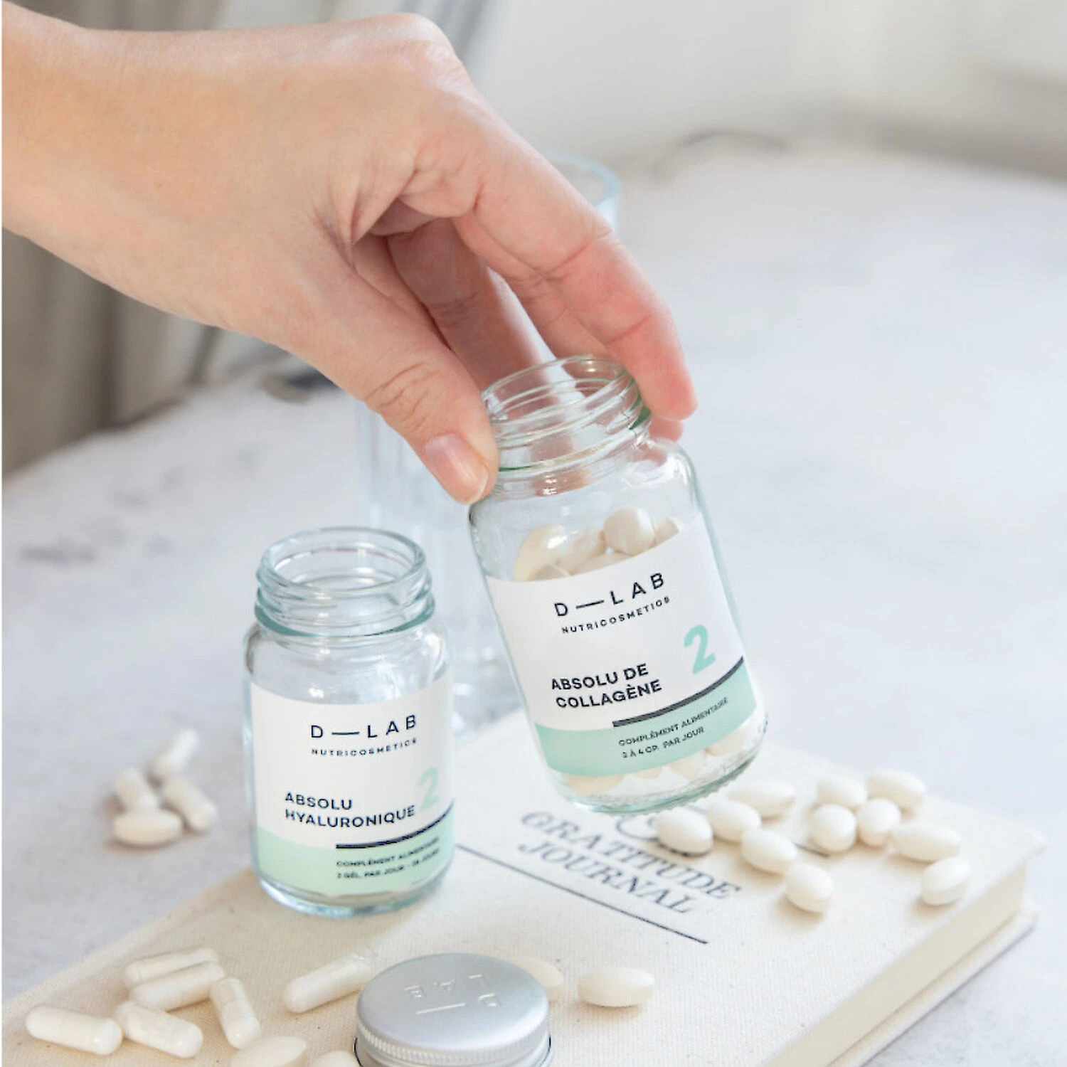 « Ingrédients de l’Absolu de Collagène : INGRÉDIENT (4 comp.) • Oligopeptides de collagène 1,88 g et oligopeptides d’élastine 120 mg (poisson, mollusque, crustacé) • Anti-agglomérant : gomme d’acacia, acides gras • Agent d’enrobage : hydroxypropylméthylcellulose, cellulose microcristalline, acides gras.