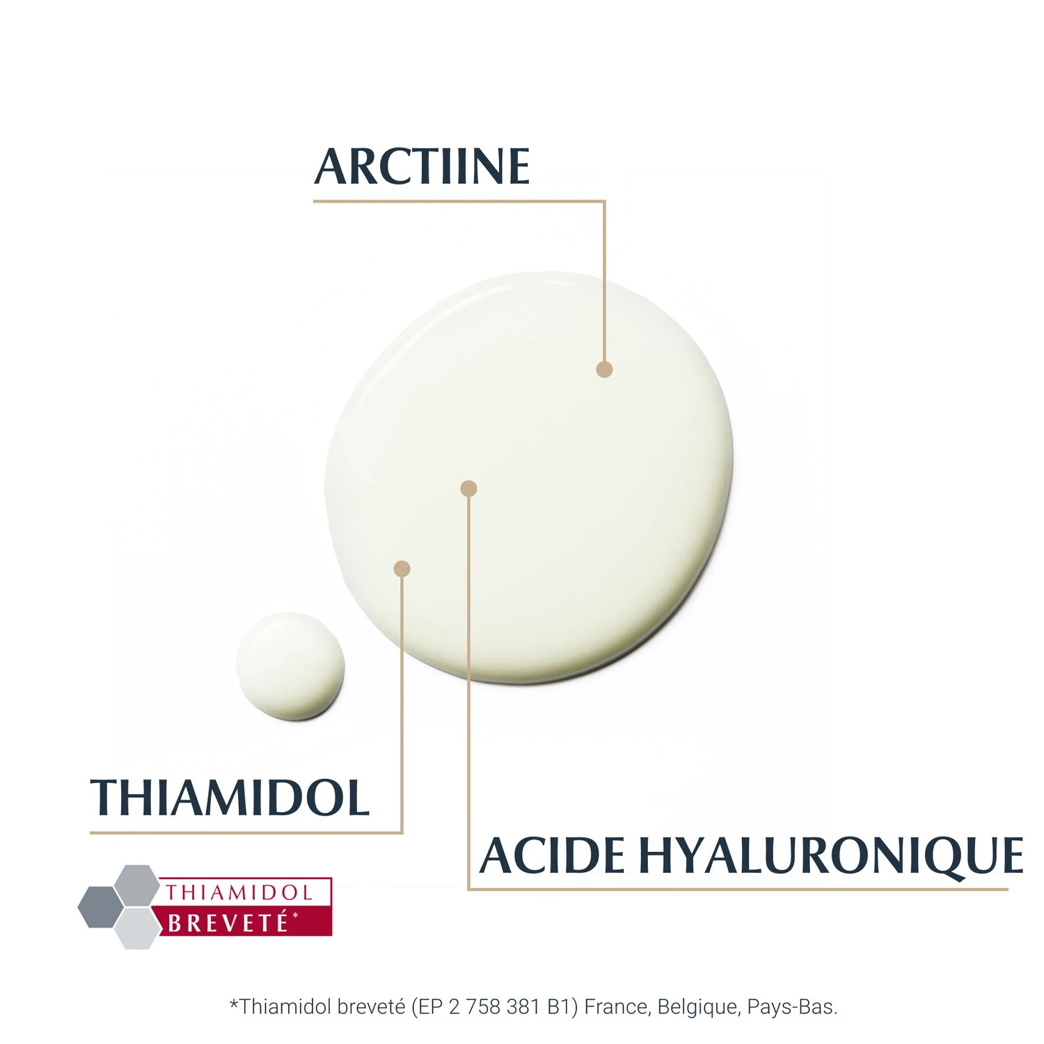 Aqua, Glycerin, Octocrylene, Alcohol Denat., Isopropyl Palmitate, Cetearyl Isononanoate, Distarch Phosphate, Methylpropanediol, Isobutylamido Thiazolyl Resorcinol, Sodium Hyaluronate, Arctium Lappa Fruit Extract, Glucosylrutin, Isoquercitrin, Tocopherol, Dimethicone, Sodium Stearoyl Glutamate, Sodium Chloride, Glyceryl Stearate, Sodium Polyacrylate, Butyl Methoxydibenzoylmethane, Trisodium EDTA, Phenoxyethanol, Pentaerythrityl Tetra-di-t-butyl Hydroxyhydrocinnamate, Parfum.