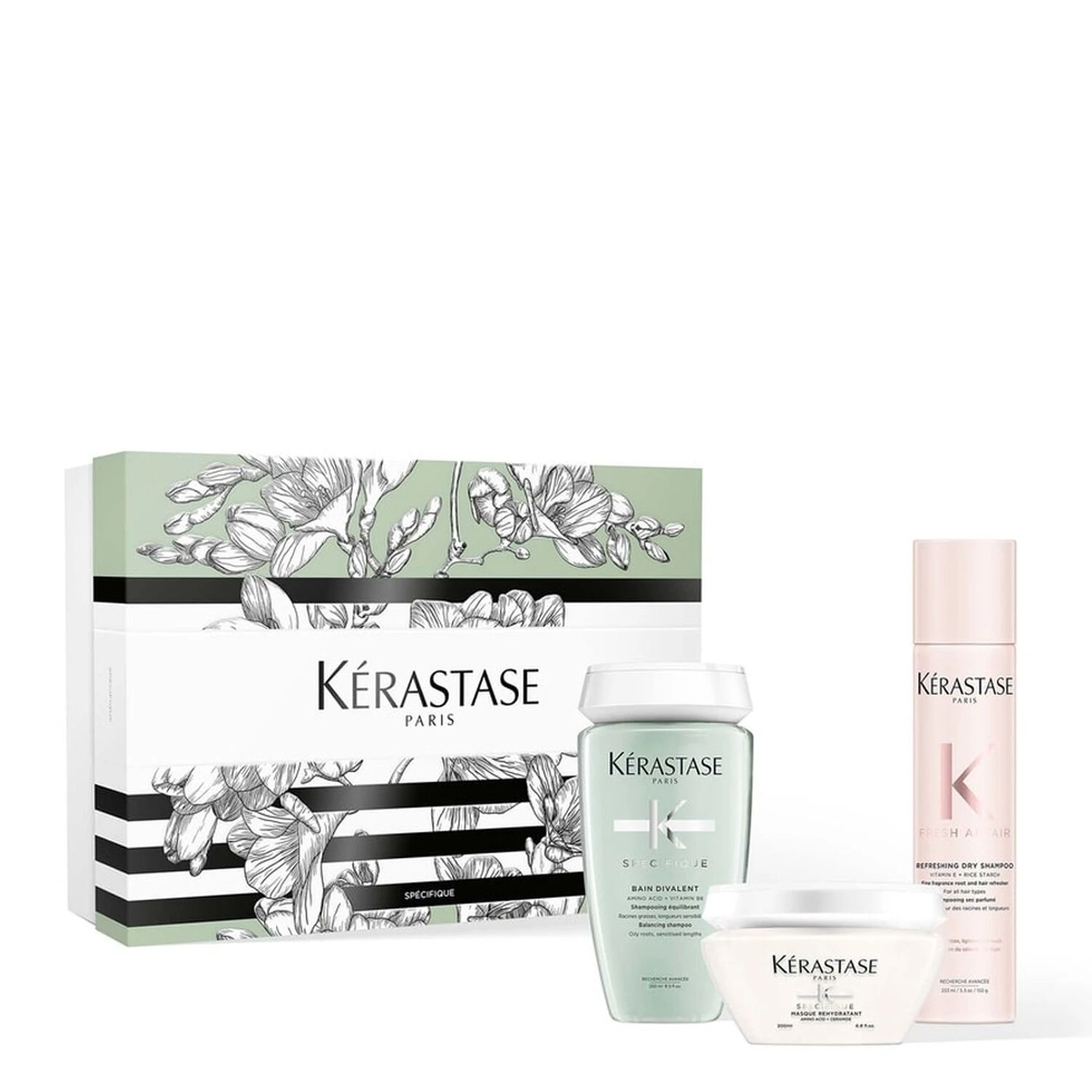 Bain Divalent 1165782 M – INGREDIENTS: AQUA / WATER / EAU • SODIUM LAURETH SULFATE • TEA-LAURYL SULFATE • COCAMIDE MIPA • DISODIUM COCOAMPHODIACETATE • GLYCOL DISTEARATE • HEXYLENE GLYCOL • SODIUM CHLORIDE • CITRIC ACID • SODIUM BENZOATE • SODIUM HYDROXIDE • CAPRYLOYL GLYCINE • POLYQUATERNIUM-11 • SALICYLIC ACID • CARBOMER • PYRIDOXINE HCl • MENTHOXYPROPANEDIOL • GUAR HYDROXYPROPYLTRIMONIUM CHLORIDE • HEXYL CINNAMAL • LINALOOL • HYDROXYCITRONELLAL • CITRONELLOL • BENZYL ALCOHOL • FUMARIC ACID • PARFUM / FRAGRANCE (F.I.L. C230589/1). Masque Réhydratant 1248714 A – INGREDIENTS: AQUA / WATER / EAU • HYDROXYPROPYL STARCH PHOSPHATE • QUATERNIUM-87 • STEARYL ALCOHOL • BEHENTRIMONIUM CHLORIDE • PROPYLENE GLYCOL • ISONONYL ISONONANOATE • CETYL ESTERS • CAPRYLYL GLYCOL • CAPRYLOYL GLYCINE • CANDELILLA CERA / CANDELILLA WAX / CIRE DE CANDELILLA • ISOPROPYL ALCOHOL • PHENOXYETHANOL • SODIUM HYDROXIDE • LINALOOL • LIMONENE • GERANIOL • CITRONELLOL • ALPHA-ISOMETHYL IONONE • 2-OLEAMIDO-1,3-OCTADECANEDIOL • CI 42090 / BLUE 1 • CI 19140 / YELLOW 5 • PARFUM / FRAGRANCE (F.I.L. C257032/1). Fresh Affair 1244518 – INGREDIENTS: BUTANE • ALCOHOL DENAT. • PROPANE • ALUMINUM STARCH OCTENYLSUCCINATE • ORYZA SATIVA STARCH / RICE STARCH • DIISOPROPYL ADIPATE • DISTEARDIMONIUM HECTORITE • LIMONENE • LINALOOL • TOCOPHERYL ACETATE • ASCORBYL PALMITATE • BUTYLENE GLYCOL • HELIANTHUS ANNUUS SEED EXTRACT / SUNFLOWER SEED EXTRACT • CITRAL • HYDROXYCITRONELLAL • GERANIOL • PARFUM / FRAGRANCE (F.I.L. C245872/1).