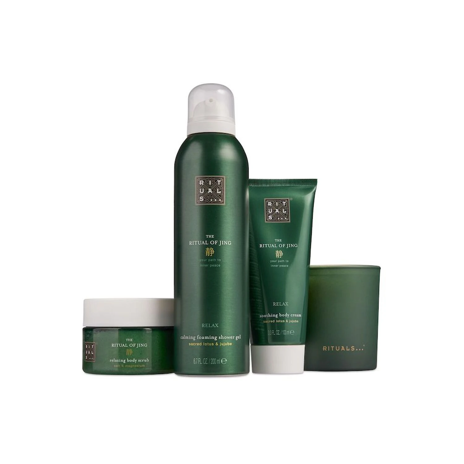 The Ritual of Jing Body Cream: Aqua/Water, Cetearyl Alcohol, Glycerin, Caprylic/Capric Triglyceride, Propylheptyl Caprylate, Undecane, Helianthus Annuus (Sunflower) Hybrid Oil, Parfum/Fragrance, Zizyphus Jujuba (Jujube) Fruit Extract, Nelumbo Nucifera (Lotus) Flower Extract, Tocopheryl Acetate, Tocopherol, Tridecane, Allantoin, Ubiquinone, Isohexadecane, Cetyl Palmitate, Ceteareth-20, Glyceryl Stearate, Propylene Glycol, Carbomer, Sodium Polyacrylate, Ceteareth-12, Phenoxyethanol, Caprylyl Glycol, Potassium Sorbate, Benzyl Alcohol, Benzyl Salicylate, Hexyl Cinnamal, Linalool, Alpha-Isomethyl Ionone, Sodium Hydroxide.
