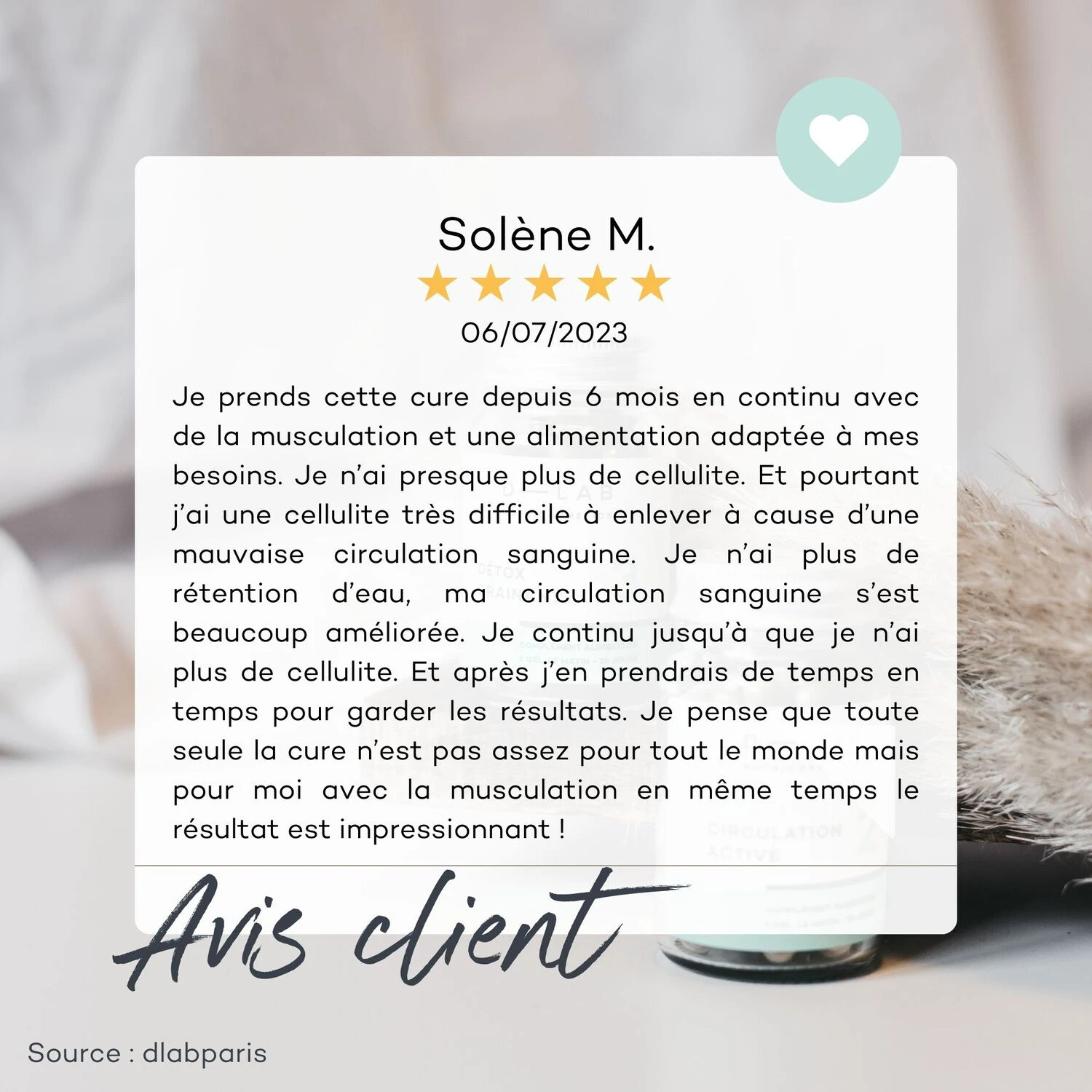 Ingrédients du Complexe Circulation Active : Gélule végétale : Hydroxypropylméthylcellulose • Extrait de vigne rouge titré en polyphénols 130 mg (EPS1 1,56 g) ; feuille • Extrait d’ortie piquante 100 mg (EPS1 400 mg) ; partie aérienne • Extrait de guarana 100 mg (EPS1 300 mg) ; graine • Extrait de marron d’Inde titré en aescine 90 mg (EPS1 720 mg) ; fruit • Extrait d’orthosiphon 60 mg (EPS1 240 mg) ; feuille • Extrait de mélilot titré en coumarine 50 mg (EPS1 200 mg) ; partie aérienne • Sels thermaux de Vichy 30 mg • Extrait de riz • Vitamine C 20 mg 25% VNR2 • Fer 5 mg 36% VNR2.